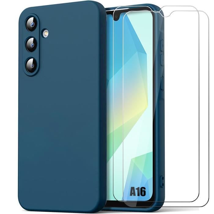 Case and Tempered Glass - BOOLING - for Samsung Galaxy A16 4G-5G - Liquid Silicone - Scratch Protection - Blue
