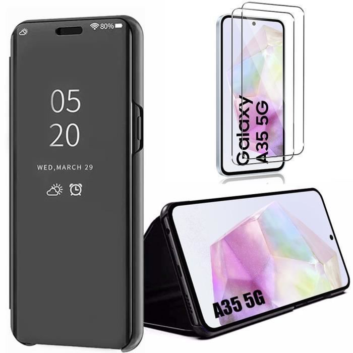 Coque de protection - BOOLING - pour Samsung Galaxy A35 5G - Flip case - Effet Miroir - Noir