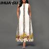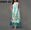 IHUASU 48 Color New Women Loose Vintage Floral Print Ruffle Dress Befree Dress Big Summer Party Tank Tops Elegant Maxi Dresses