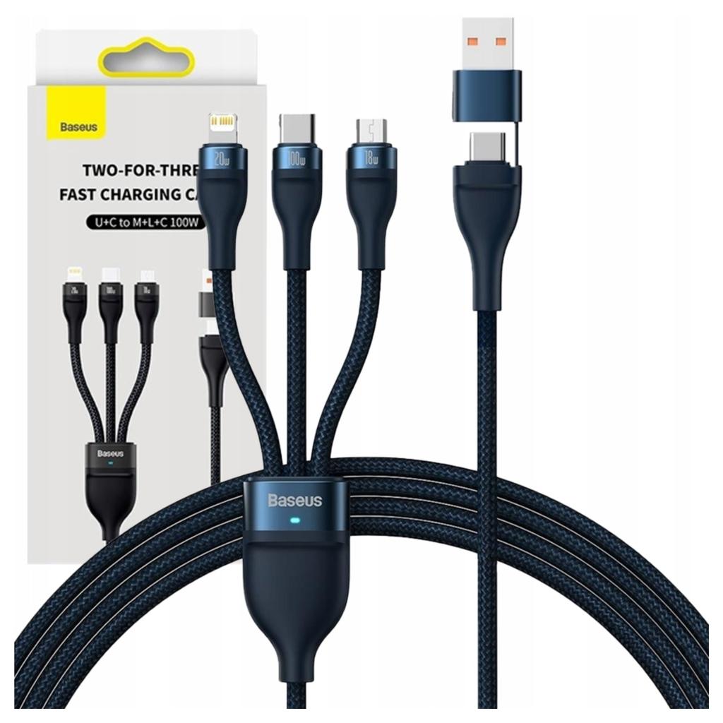 Baseus Flash Series 2 3-in-1 USB Cable, USB-C + micro USB + Lightning, 100W, 1.2m