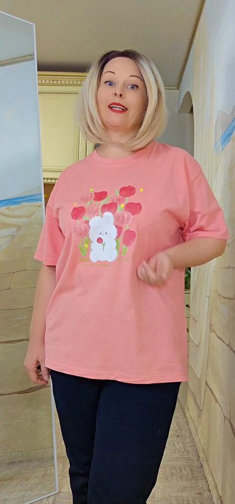 Summer Ladies Cute Cat Printed Cotton Breathable Style T-Shirt Short Sleeve