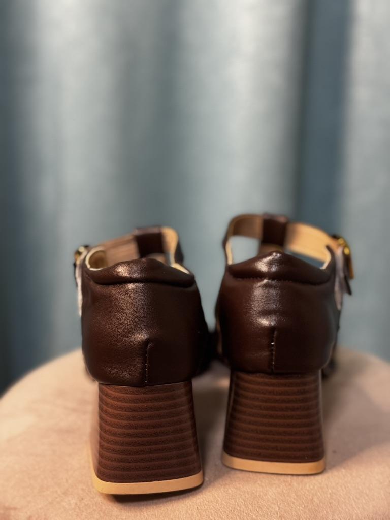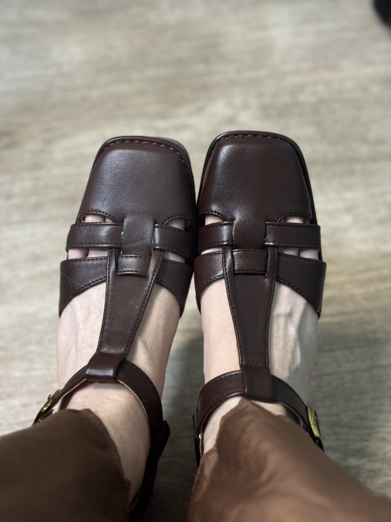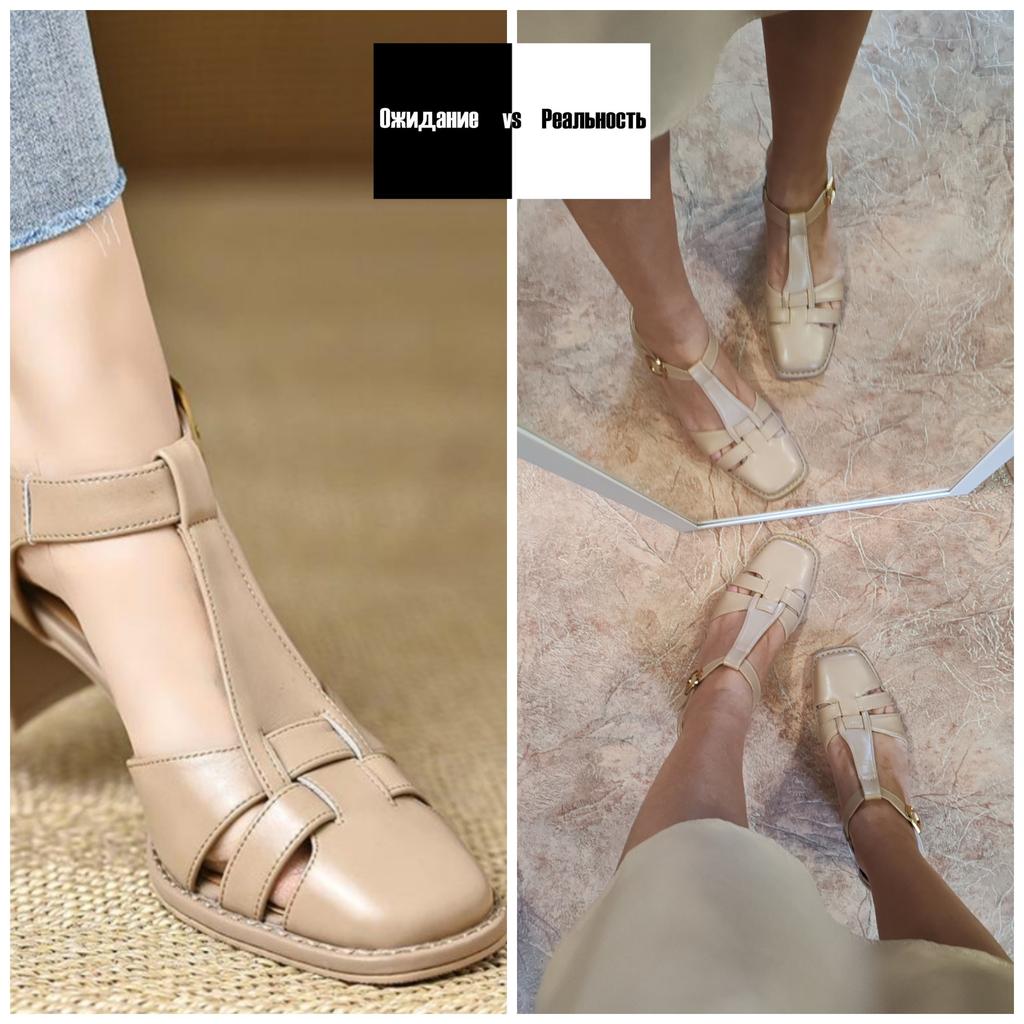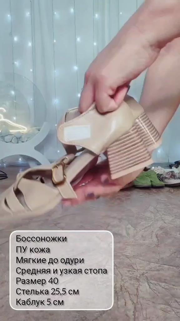 Women's sandals on a low heel Available in 2 colors Size range: from 34 to 40 I ordered the apricot color, chose size 40, for a foot length of 25cm - there is a small allowance in the front, but they can be worn. They fasten on the side with Velcro, but there is also a zipper for volume adjustment. (They won't fit a wide foot, they are narrow at the front). Sandals made of PU leather, soft. Heel square, low - 5cm, sturdy. Sandals are lightweight and very comfortable. They look beautiful on the leg, can be worn with both jeans and skirts. I was satisfied with the sandals 👍 I recommend to buy!