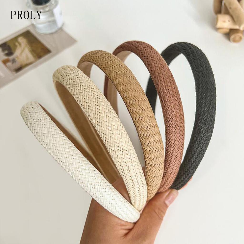 PROLY New Fashion Women's Hair Accessories Fresh Summer Headwear Straw Woven Hairband Adult Headband