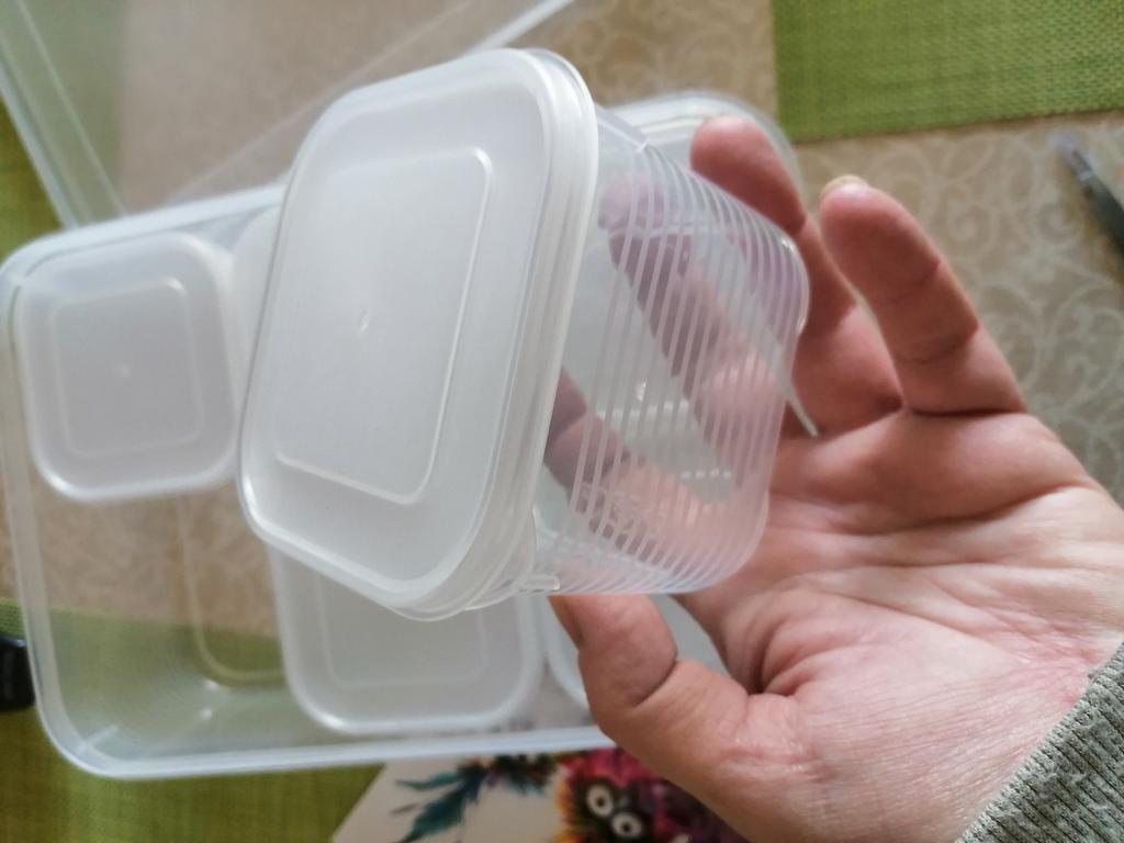 Neat, compact containers. I freeze soup in them in portions. In volume, just for 1 portion. The plastic is good, food-grade, absolutely odorless.