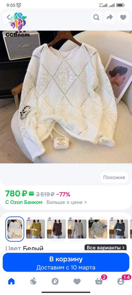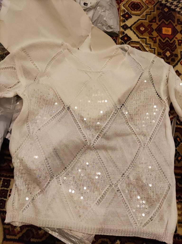 I give stars only for the quality work of SP! The knitwear is good, the sequins are sewn on poorly, the fishing line sticks out, several sequins have fallen off!