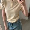 Spring Summer New Arrival Korean Simple and Versatile Polo Collar Short Sleeve Half Zip Knitted Sweater
