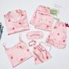 GMXIA Faux Silk Strawberry Long-sleeved Pajamas 7-piece Set, 7-piece Set of Silk Pajamas for Spring, Summer and Autumn Home Wear Pajama Sets