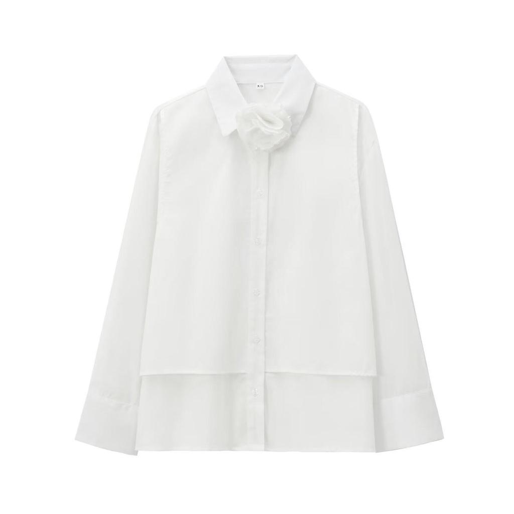 2024 Autumn Women's European & American Style Floral Poplin Long Sleeve Shirt