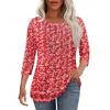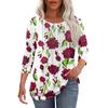 Women's Fashionable Casual Pleated Round Neck Casual Floral Print Seven Quarter Sleeved T-shirt Top