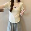 Women's Summer Korean Style Slim Bow Lace Patchwork Short Sleeve T-Shirt
