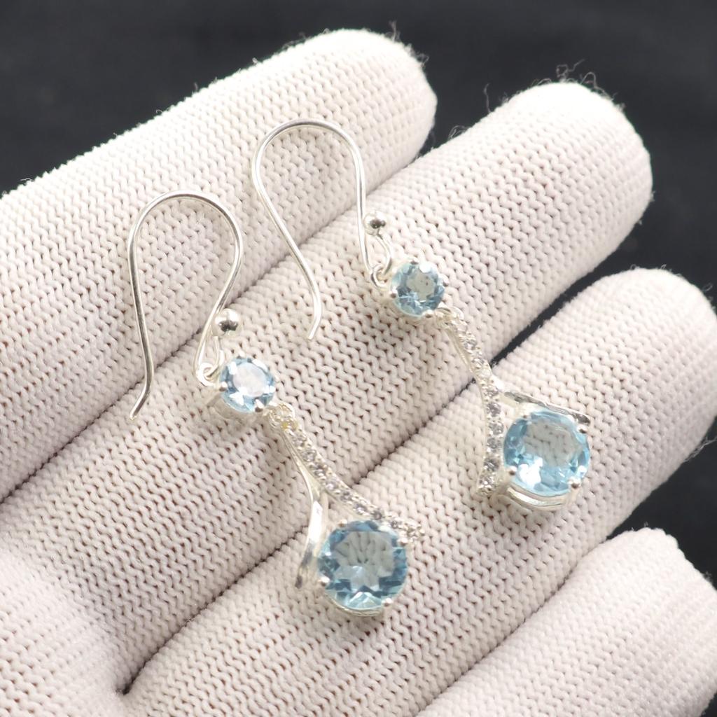 Sky Blue Topaz Gemstone 925 Solid Silver Jewelry Zircon Earrings 1.84" For Gift CZE-9-4