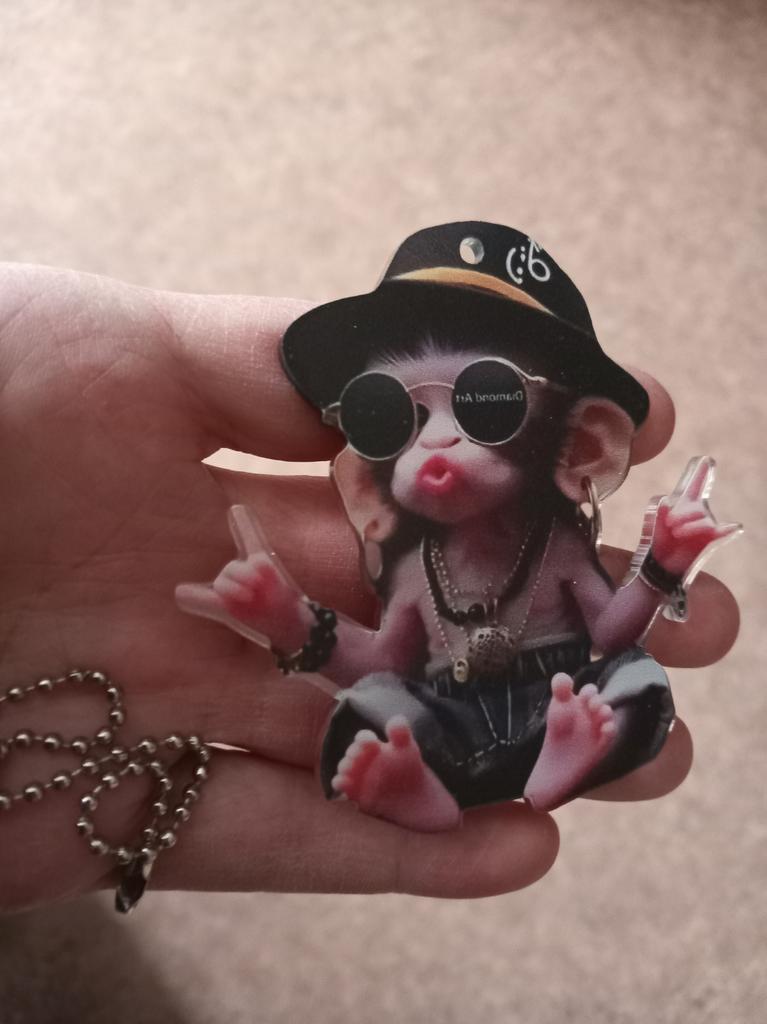 New Acrylic 2D Flat Glasses Cute Monkey Car Pendant Rearview Mirror Car Backpack Small Pendant