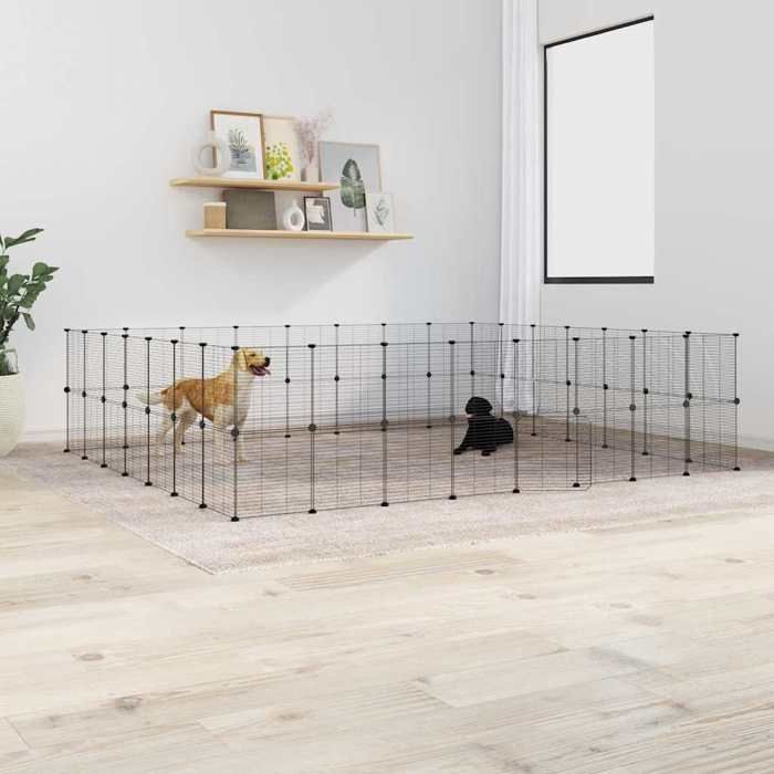 3114048 vidaXL Pet Cage with 60 Panels and Door Black 35x35 Cm