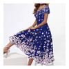 Elegant Floral Print Long Dress for Women Summer Party U Neck Short Sleeve Evening