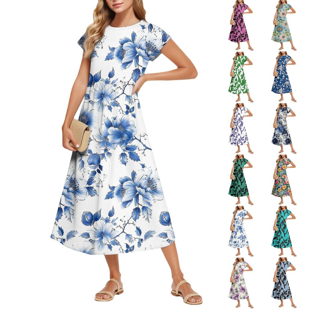 Women's Fashion Temperament Elegant Waisted Floral Casual Dresses