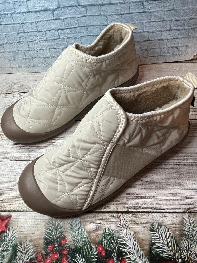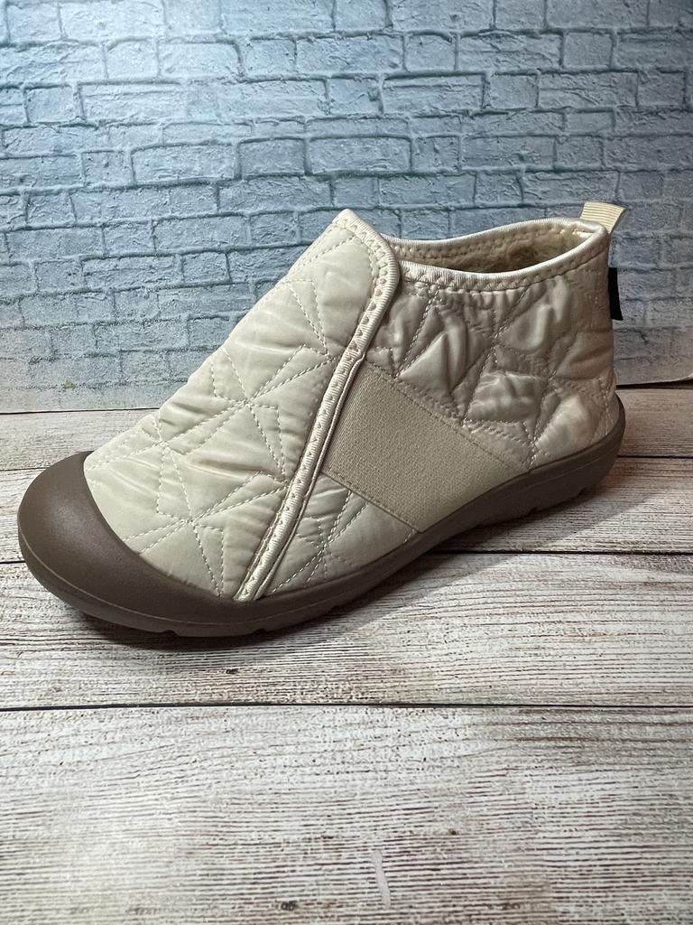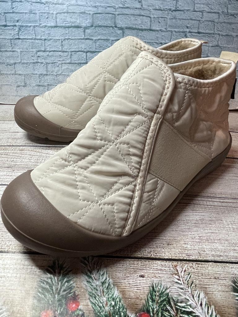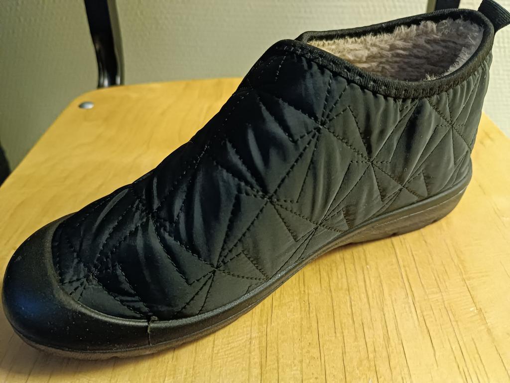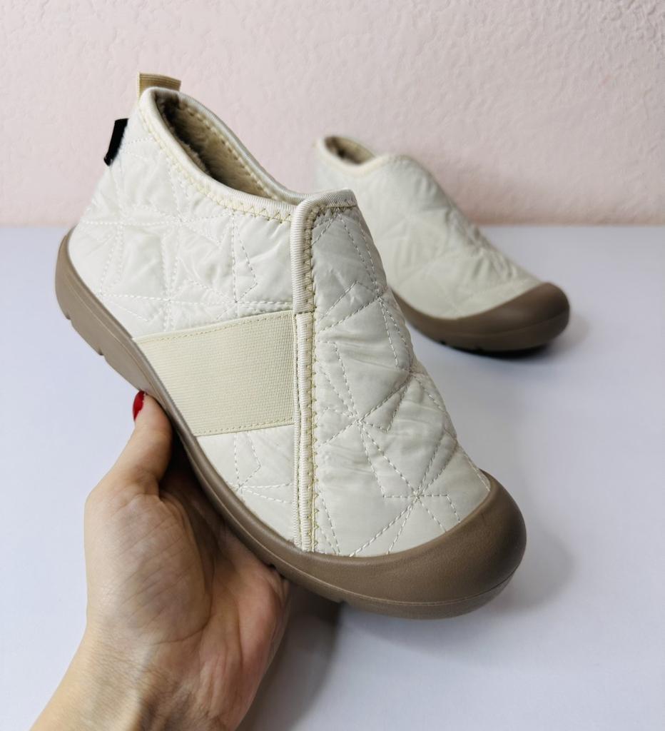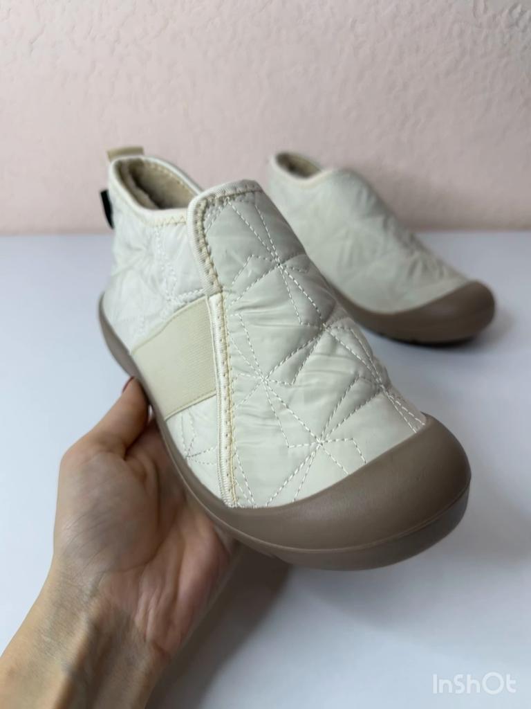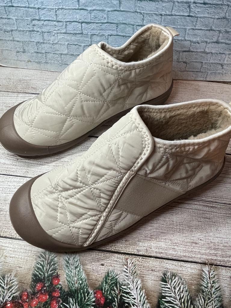 Wonderful soft bootsβΊοΈ Cozy, with short soft fur inside, they are very comfortable. Those who don't like stiff shoes, need foot comfort, they will definitely suit! The tailoring is factory-made, neat, without odor. Upper - quilted raincoat fabric, like a jacket, sole is flexible. The color is very pleasant, chocolate sole and a beautiful beige upper. Lightweight, fur insole, removable. size 38 fits perfectly for a foot length of 24cm. Suitable for wide feet. I highly recommend it π§‘