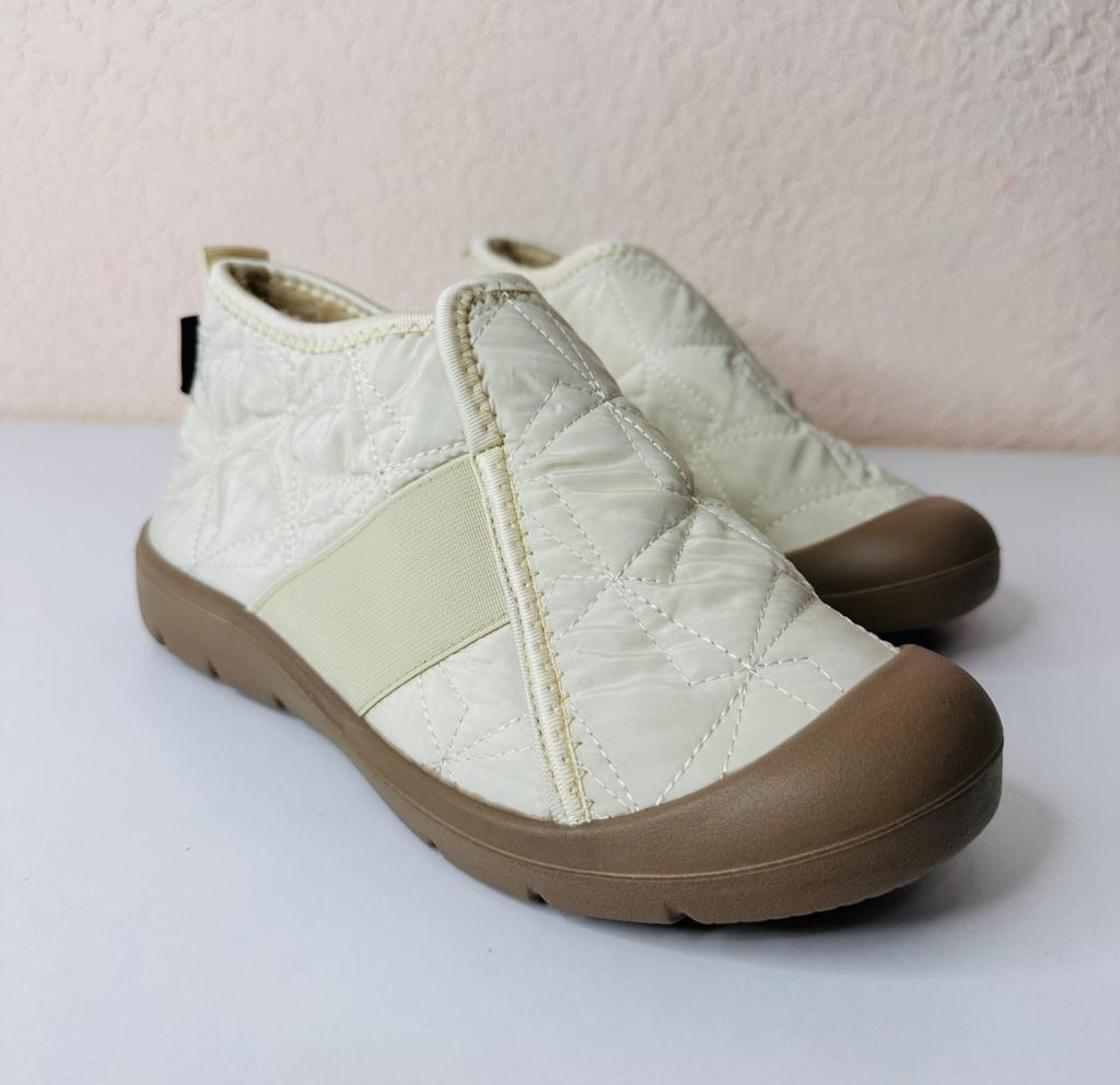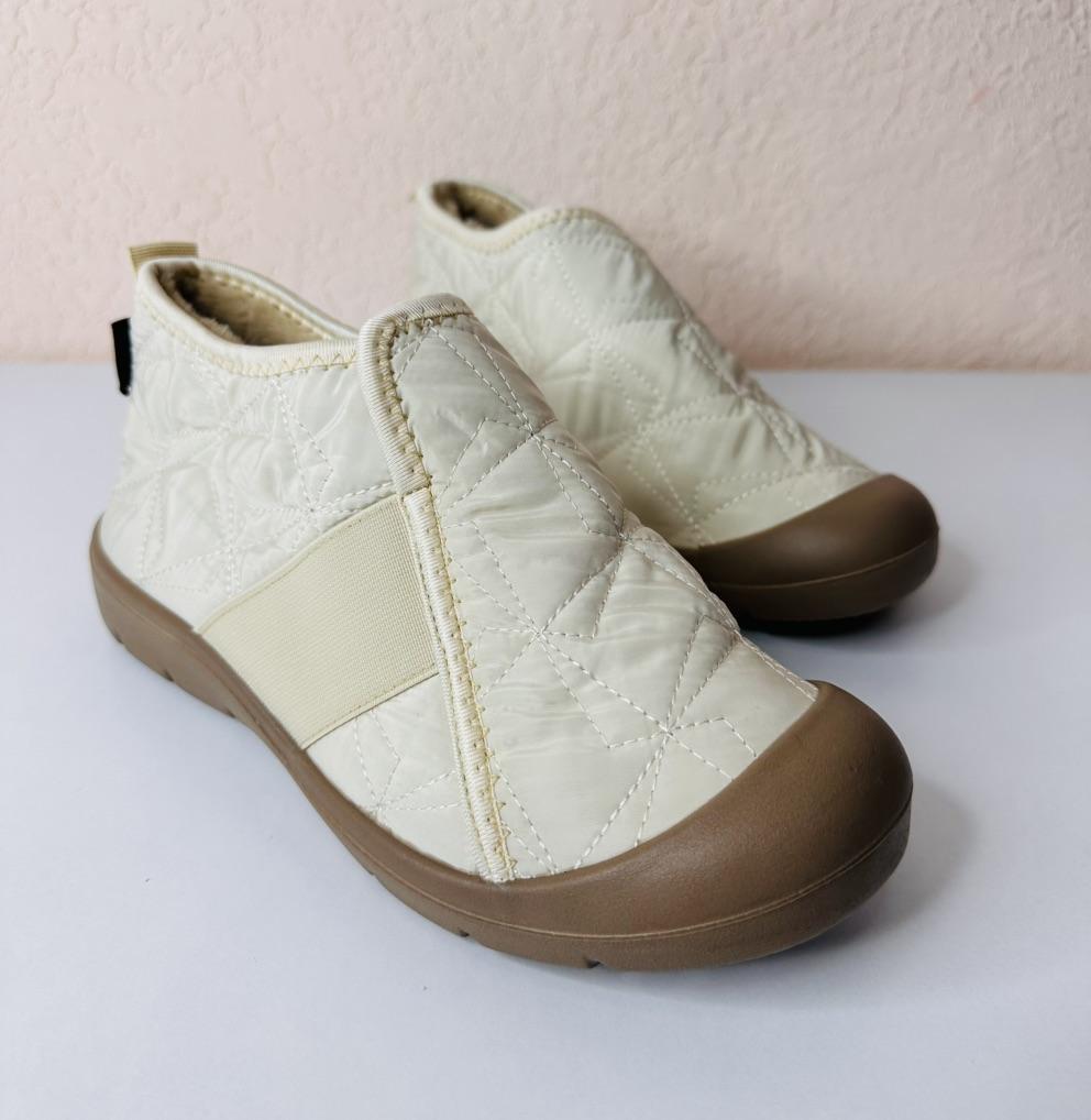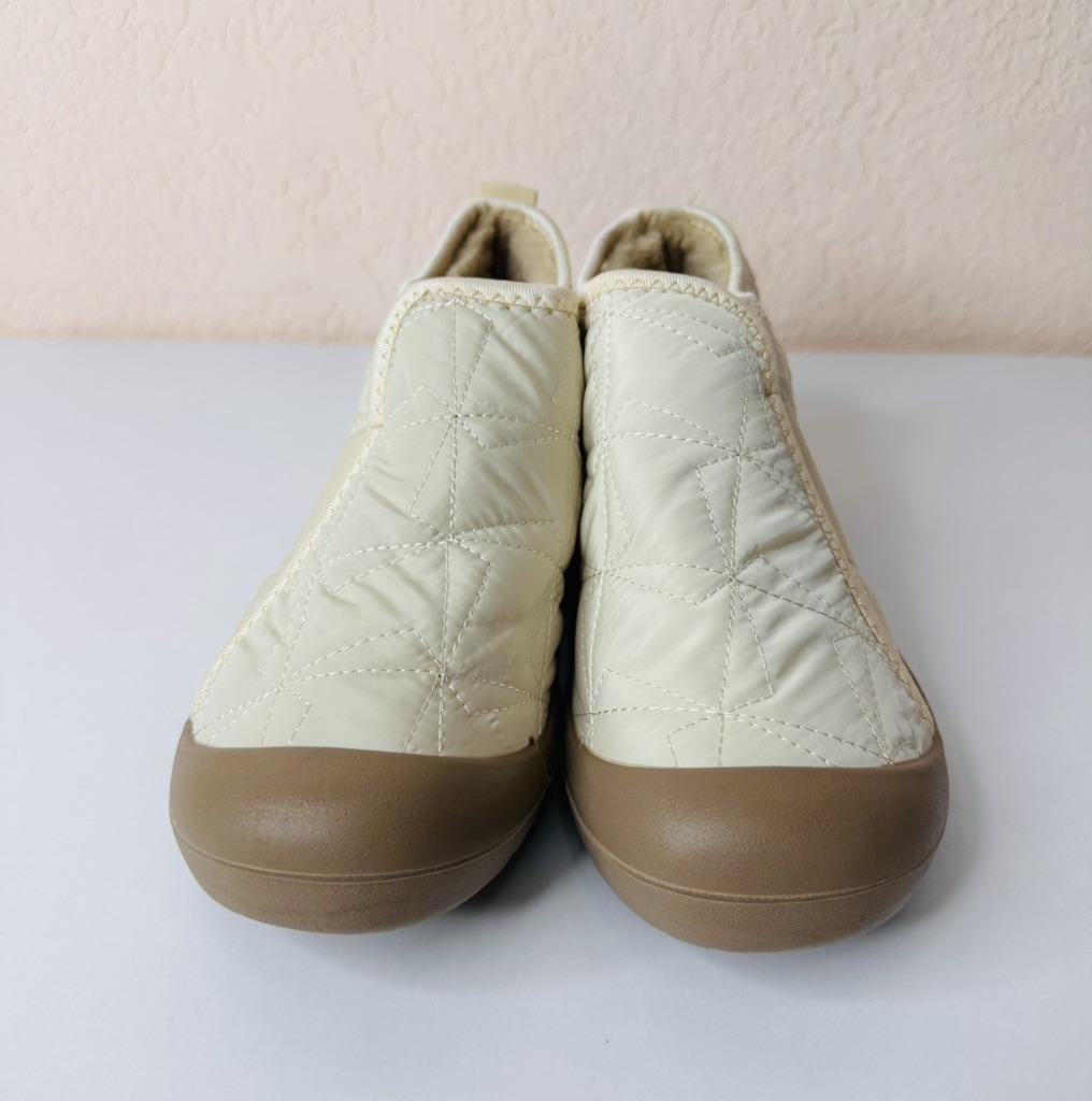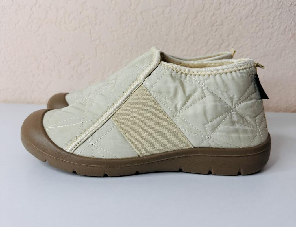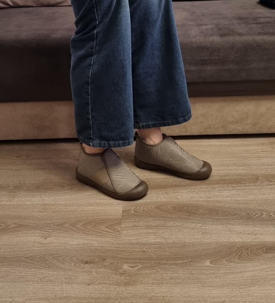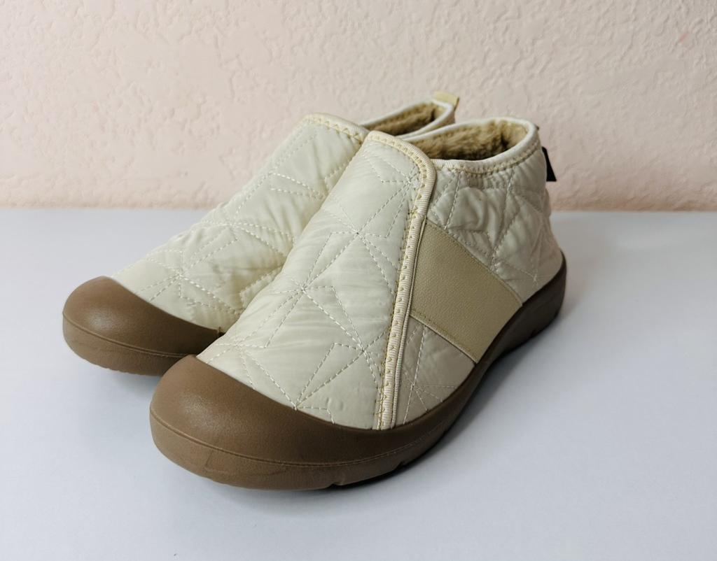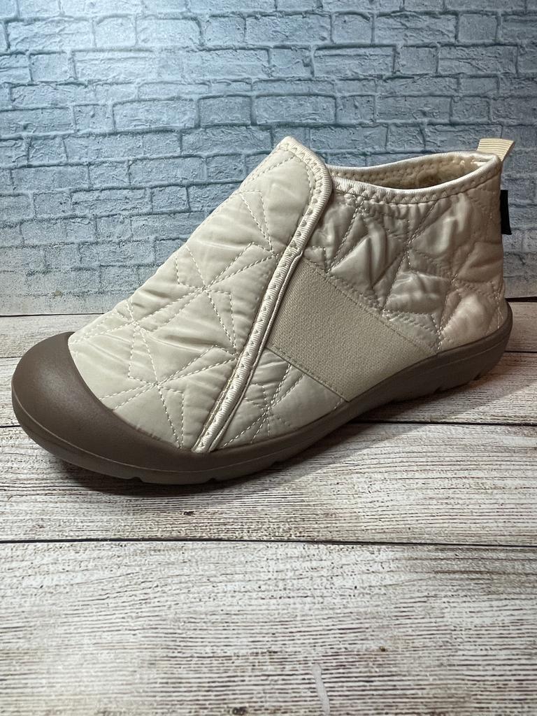 Wonderful soft bootsβΊοΈ Cozy, with short soft fur inside, they are very comfortable. Those who don't like stiff shoes, need foot comfort, they will definitely suit! The tailoring is factory-made, neat, without odor. Upper - quilted raincoat fabric, like a jacket, sole is flexible. The color is very pleasant, chocolate sole and a beautiful beige upper. Lightweight, fur insole, removable. size 38 fits perfectly for a foot length of 24cm. Suitable for wide feet. I highly recommend it π§‘