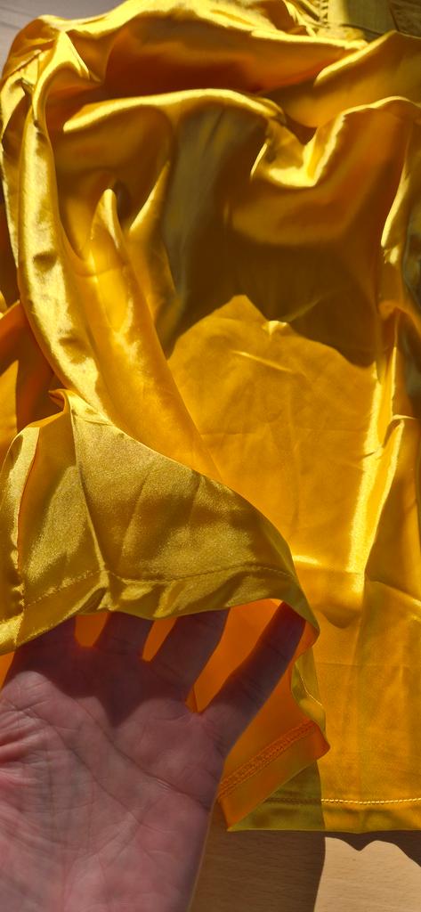 ☀️ This blouse is available in a variety of very appealing colors 💃 and the size range is also overwhelming. ☀️ I oriented myself according to the size chart, however the model is unfortunately too small for me and I regret this enormously, as I was extremely looking forward to it. ☀️ The garment is made of polyester and this material, in my opinion, does not feel pleasant to the touch! The shade of yellow is bombastic ☀️🥳💃! I recommend choosing one size larger! ☀️ The delivery to Austria required 5 weeks. The goods arrived excellently packaged and consolidated! Music 🎶 from Capcut pro