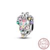 Colored Zirconium 925 Sterling Copper Hollow Moon Heart Shaped Flower&Bear&Love Charm Fit DIY Bracelet Ladies' Gift Zircon