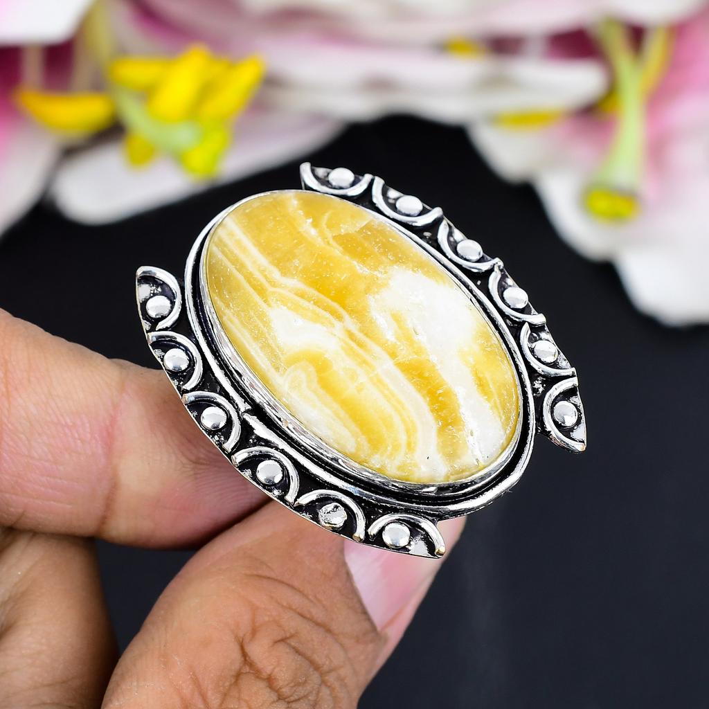 Calcite Agate Gemstone Handmade 925 Sterling Silver Jewelry Ring Size 9 KG-1670