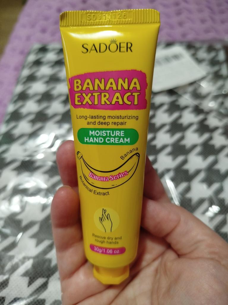 Very pleasant banana scent, moisturizes hand skin well, but a very small tube. Thank you!!!