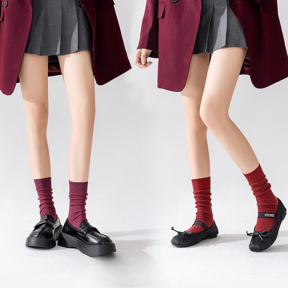 Female Autumn and Winter Style Cotton Antibacterial Red Moon Non Boneless Tube Pile Socks