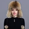 Woman Natural Raccoon Fox Fur Bomber Hats Fluffy Winter Warm Windproof Russian Earflaps Trapper Hat