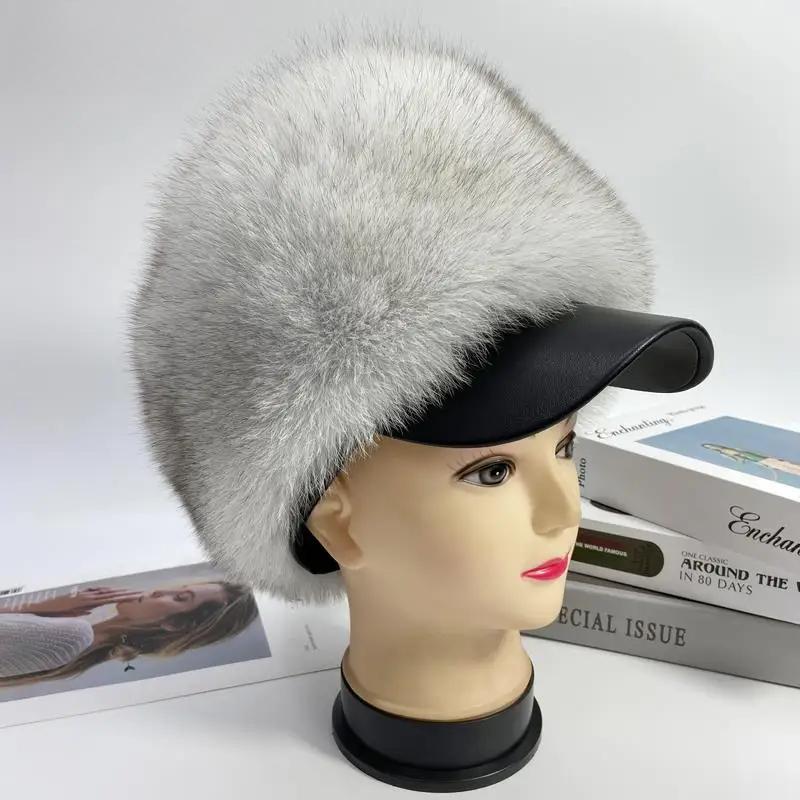 Real Fox Fur Hat Women Fluffy Brim Winter Warm Snow Cap Female Outdoor Russian Bomber Hat Winter Woman Natural Fur Cap Hat