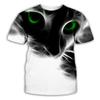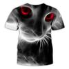 3D Digital Cat Art Printed Round Neck Short Sleeved Casual T-shirt for Teenagers with Stripes Shirt