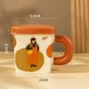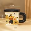 Cream Glue Square Couple Cup Ceramic Pair Mug with Lid Gift Cute Retro Boy and Girl