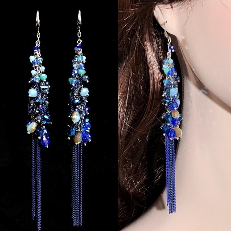 Luxury Retro Handmade Crystal Earrings Femininity Versatile Long Fringed Bride Earrings High-end Ear Jewelry