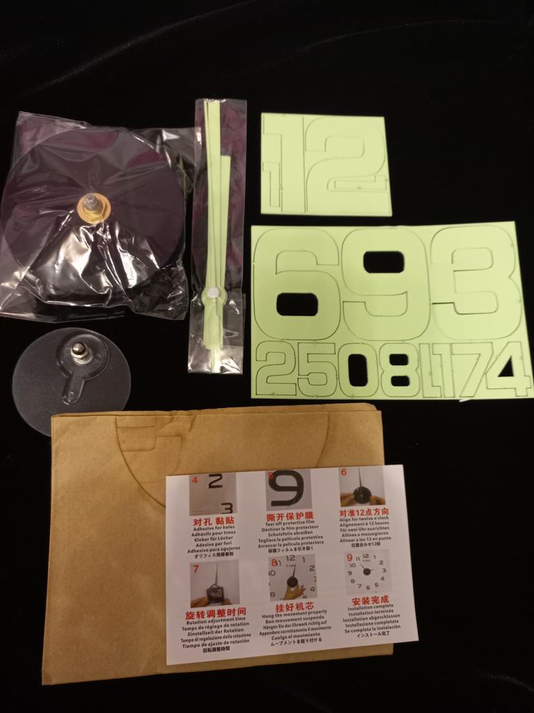 Excellent green numbers with arrows and a mechanism for a clock! Exactly what I wanted for manual crafts. They glow in the dark! Definitely recommend!