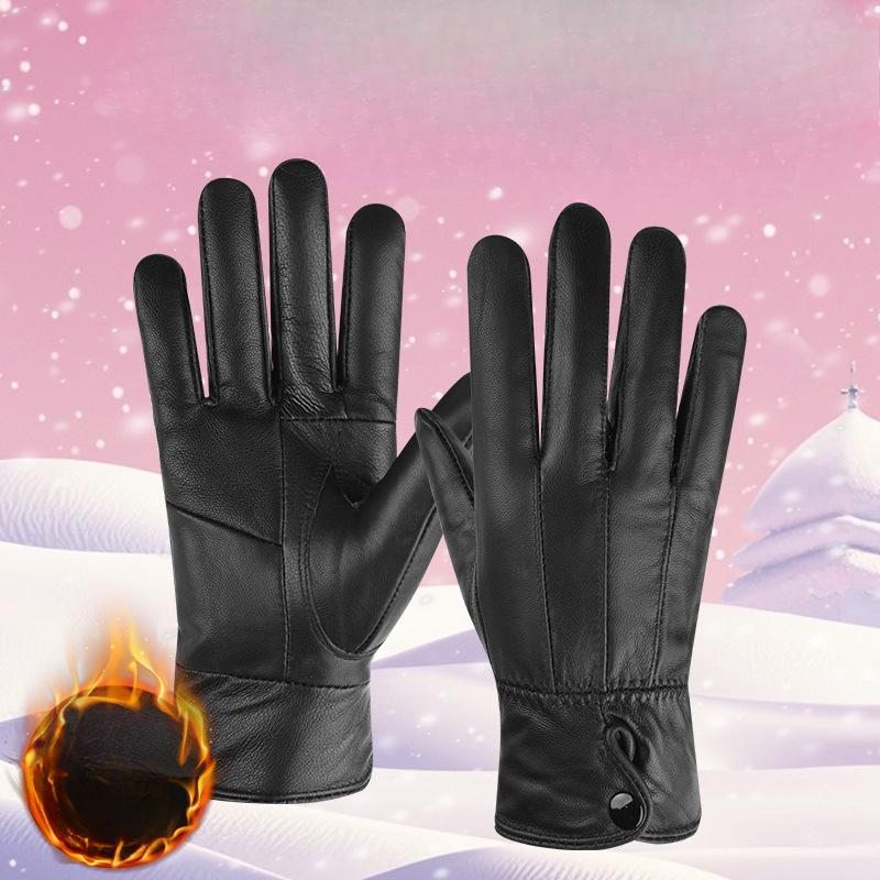 New Autumn and Winter Genuine Leather Gloves Women's Sheepskin Full Finger Fleece Warm Winter Cycling Gloves Outdoor Skiing and Cycling