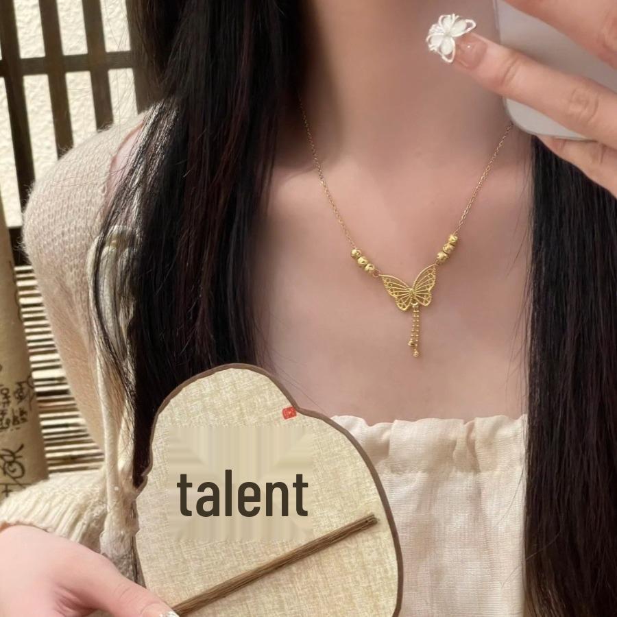 Copper Plated Gold Pendant with Pearl Butterfly Tassel - Women's Luxury Necklace