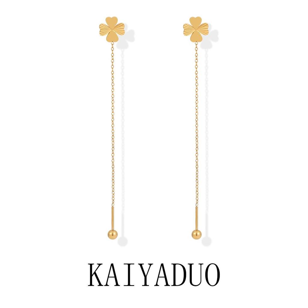 Korean High-End Laser Heart Four-Leaf Clover Earrings - Women's Fashion Titanium Steel
