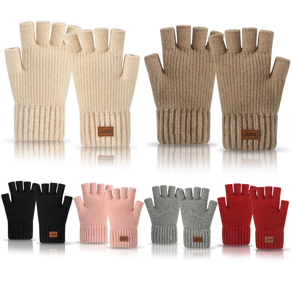 Thickened Leaky Finger Gloves In Autumn and Winter Plus Velvet Knitted Cold and Warm Half Part Writing Wool Double Layer Half Finger Gloves