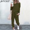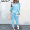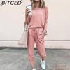 BITCED Spring and Autumn Women's Loose Solid Colour Long Sleeve Long Pants Casual Suit