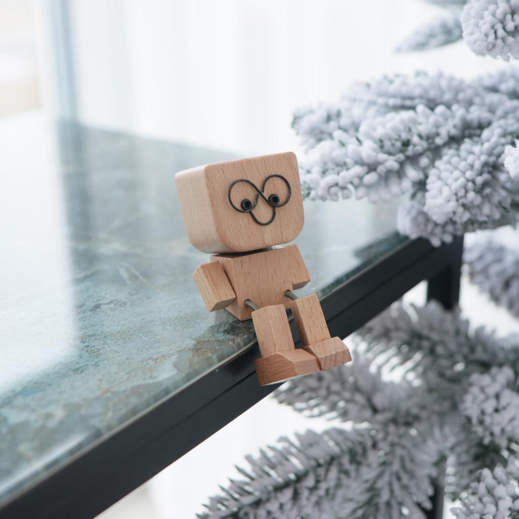 1Sets Shaking Wooden Man Figurine with 12 Magnetic Expressions Handmade Shaking Feet Wooden Doll Car Dashboard Desktop Decoration