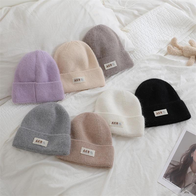 Korean Version of Rabbit Containing Wool Hat with Thickened Autumn and Winter Face Small Ear Protection Couple Versatile Pullover Hat Knit Hat