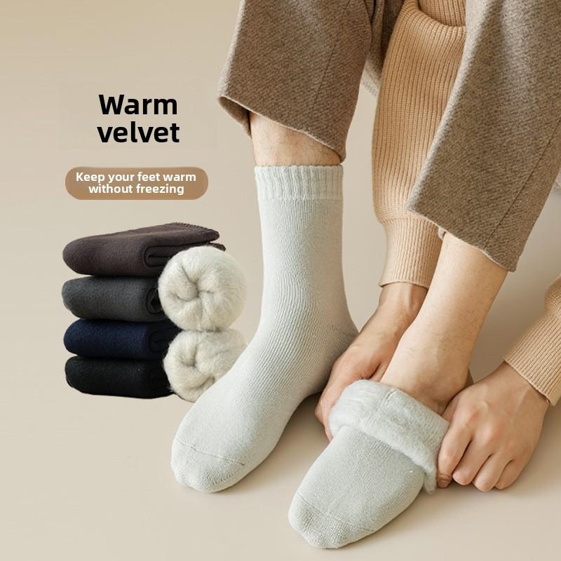 Men's Winter Velvet and Thick Warm Solid Color Household Heating Wool Socks