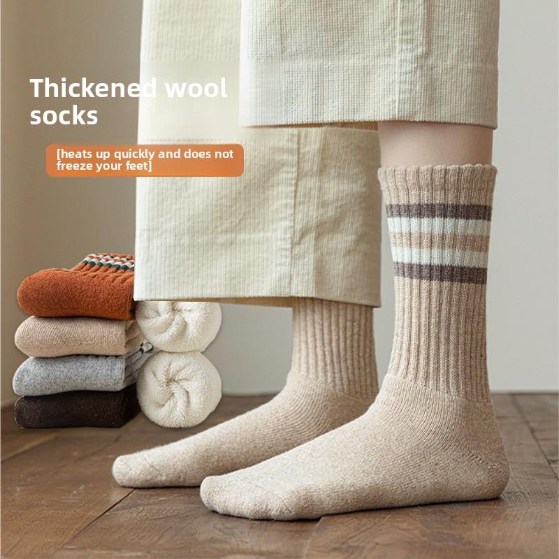 Women's Autumn and Winter Four Bar Striped Velvet Thickened Warm Long Tube Wool Pile Socks
