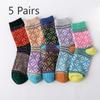 5 Pairs of New Winter Women's Rabbit Ethnic Style Wool Mid Calf Socks