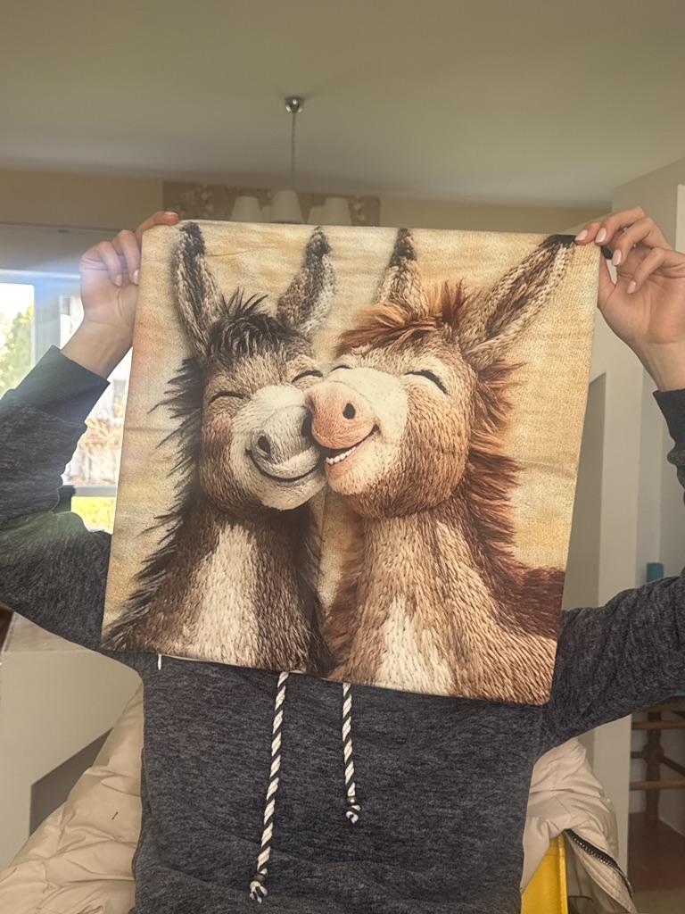 I just received this pillowcase with the cute donkey print in beige โ it's simply perfect! The material is high-quality polyester and gives a soft and pleasant feel to the touch, and this is really noticeable when it comes to comfort.. The print with the donkey and sheep in a vintage style adds a special charm and a warm feeling to any room. I especially loved how the design combines modern Chinese style with traditional touches โ it gives the cushion a unique and refreshing touch. The pillowcase also has a convenient zipper that makes it easy to change and clean. Definitely a beautiful and charming addition to any living room or bedroom!