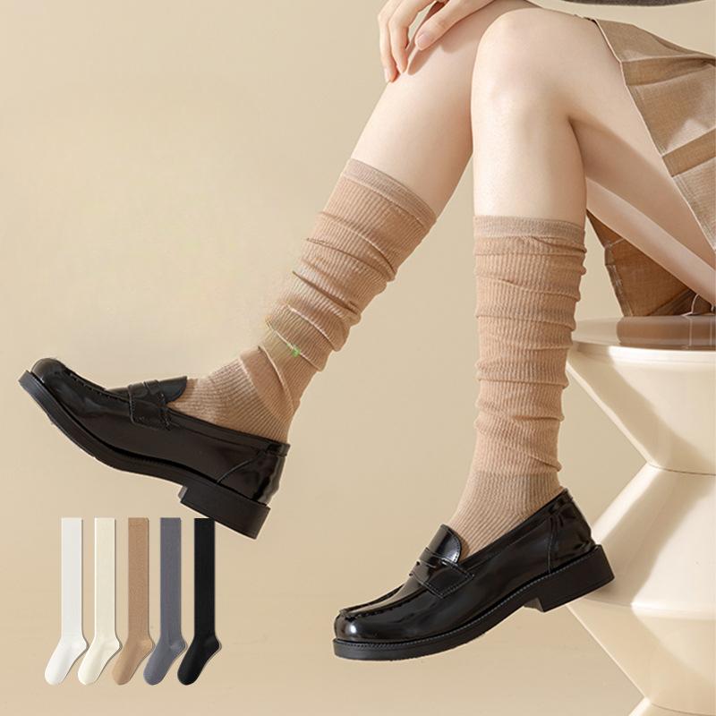 Ballet-style Calf Socks for Women In Summer, Thin Pure Cotton Slimming, Mesh Breathable, Grey Long Pile Socks
