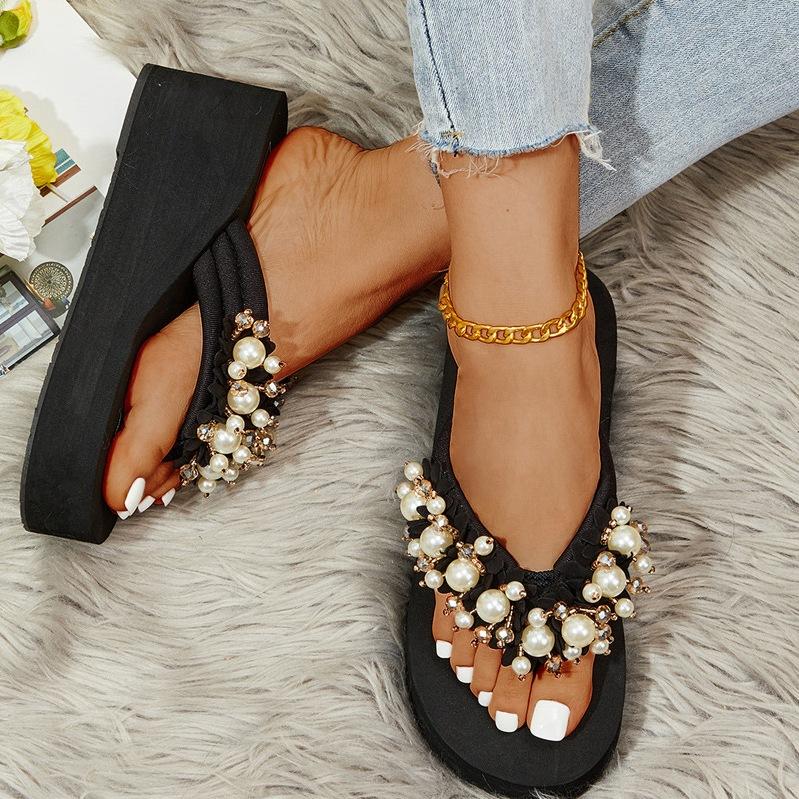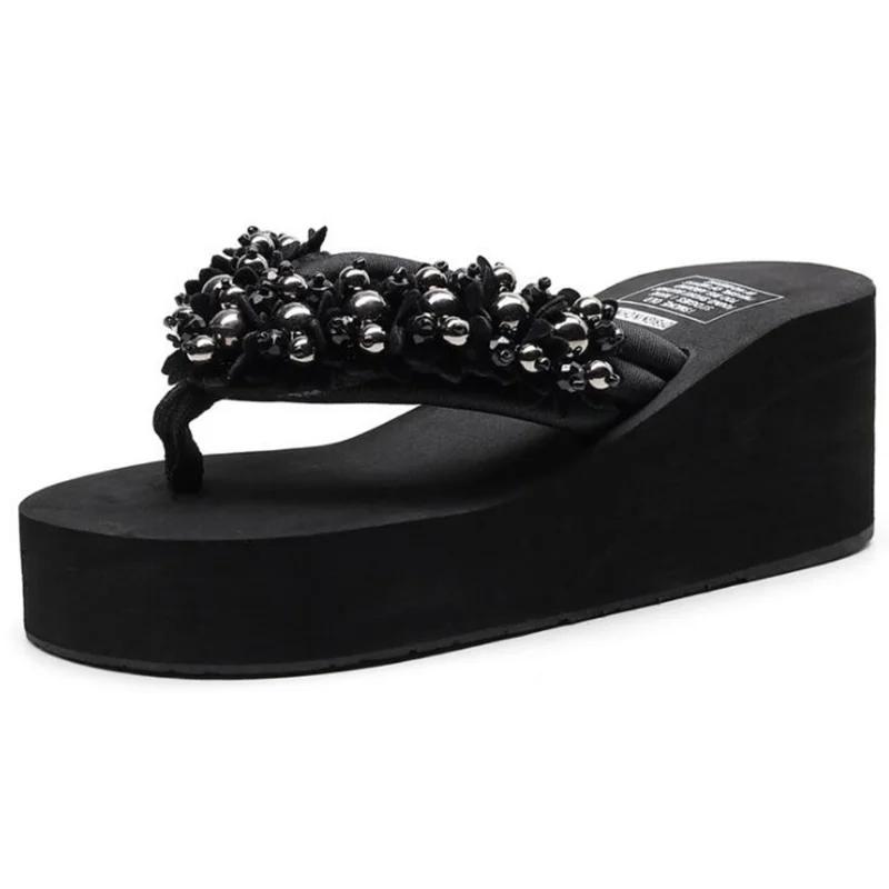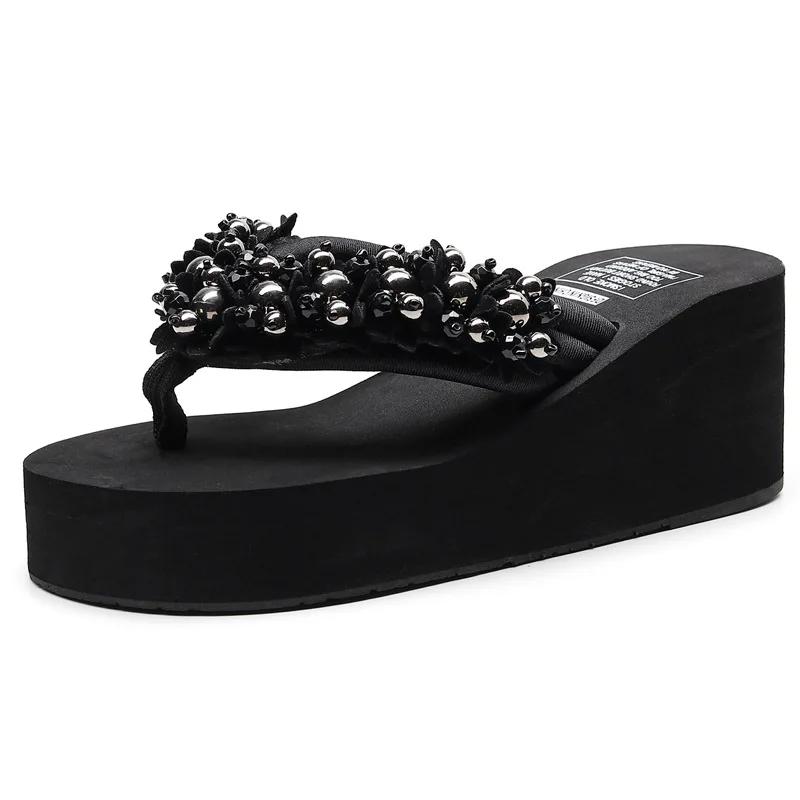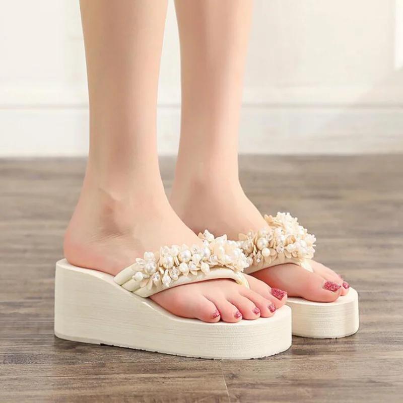 Maogu Platform Wedges Slippers White Crystal Shoe 2024 New Women's Flip Flops Beach Shoes Women Summer Platform Wedge Sandals 42