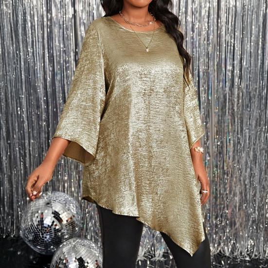 Elegant Design: Embrace sophistication with this top's elegant design featuring a round neck, long sleeves, and a subtle shiny texture. Its simplicity exudes a touch of class suitable for various occasions.