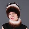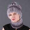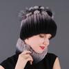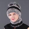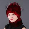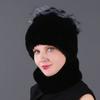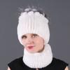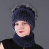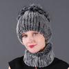 Women's New Rex Rabbit Short Dye Plus Black Fox Hair Hat Scarf Two-piece Set, Winter Warm Woven Fur Hat