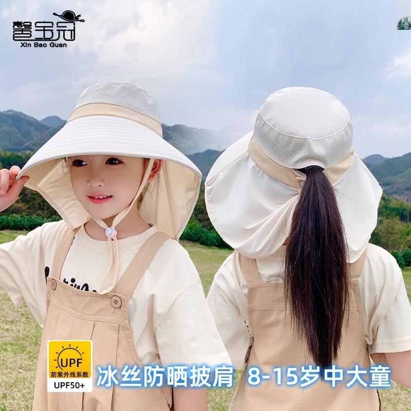 Children's Hat Big Eaves Breathable Sunscreen Hat Boys and Girls Outdoor UV Protection Sun Hat Shawl Neck Bucket Hat