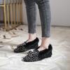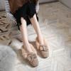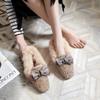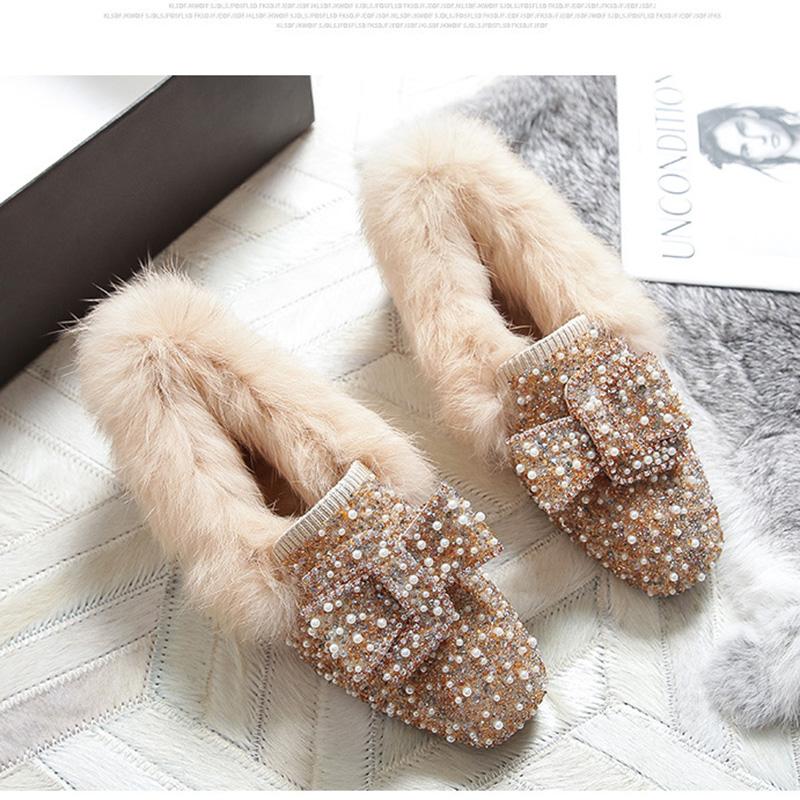 Fashion 34-43Big Size Crystal Beading Fur Moccasins Women Winter Shoes Square Toe Warm Plush Loafers Female Glitter Pearl Mink Fur Flats