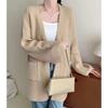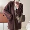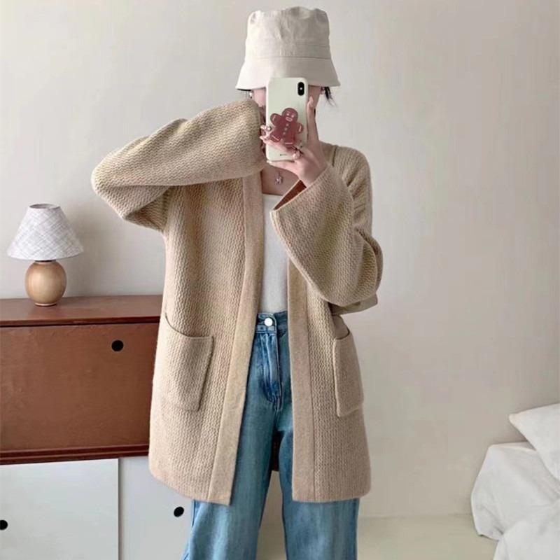 New Autumn and Winter Gentle Niche Medium and Long Solid Color Pocket Knitted Cardigan Soft Waxy Sweater Jacket Women